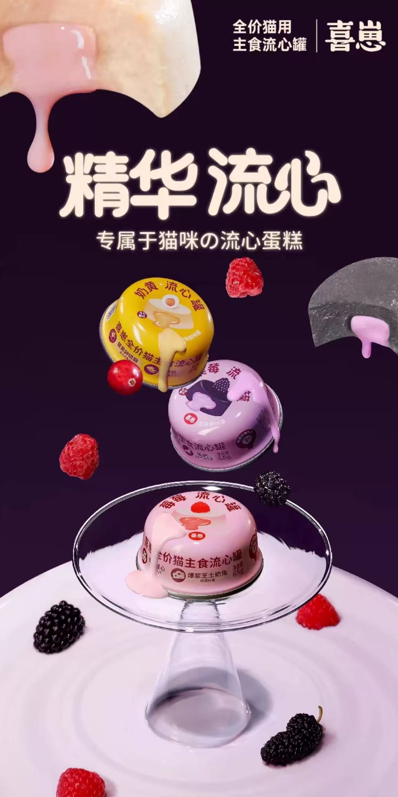 XiZai Complete & Balanced Lava Core Cat Food is a premium wet food specially designed for cats, featuring a soft mousse outer layer with a rich, flowing “lava” center. Made with high-quality animal proteins and real fruit ingredients, it delivers both nutrition and irresistible taste.